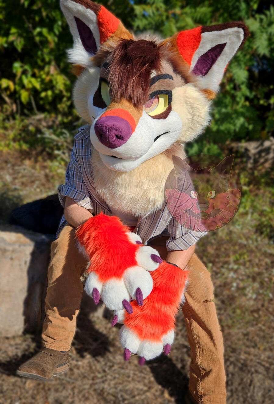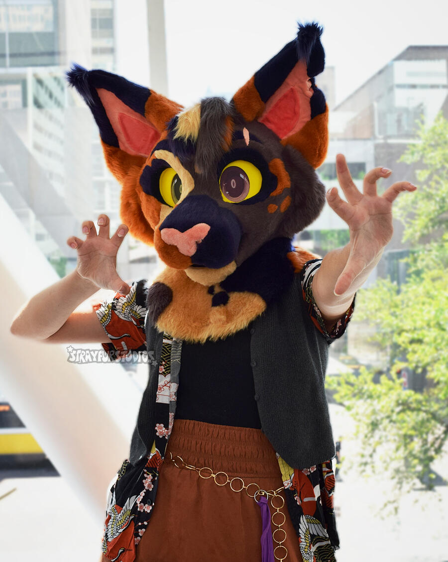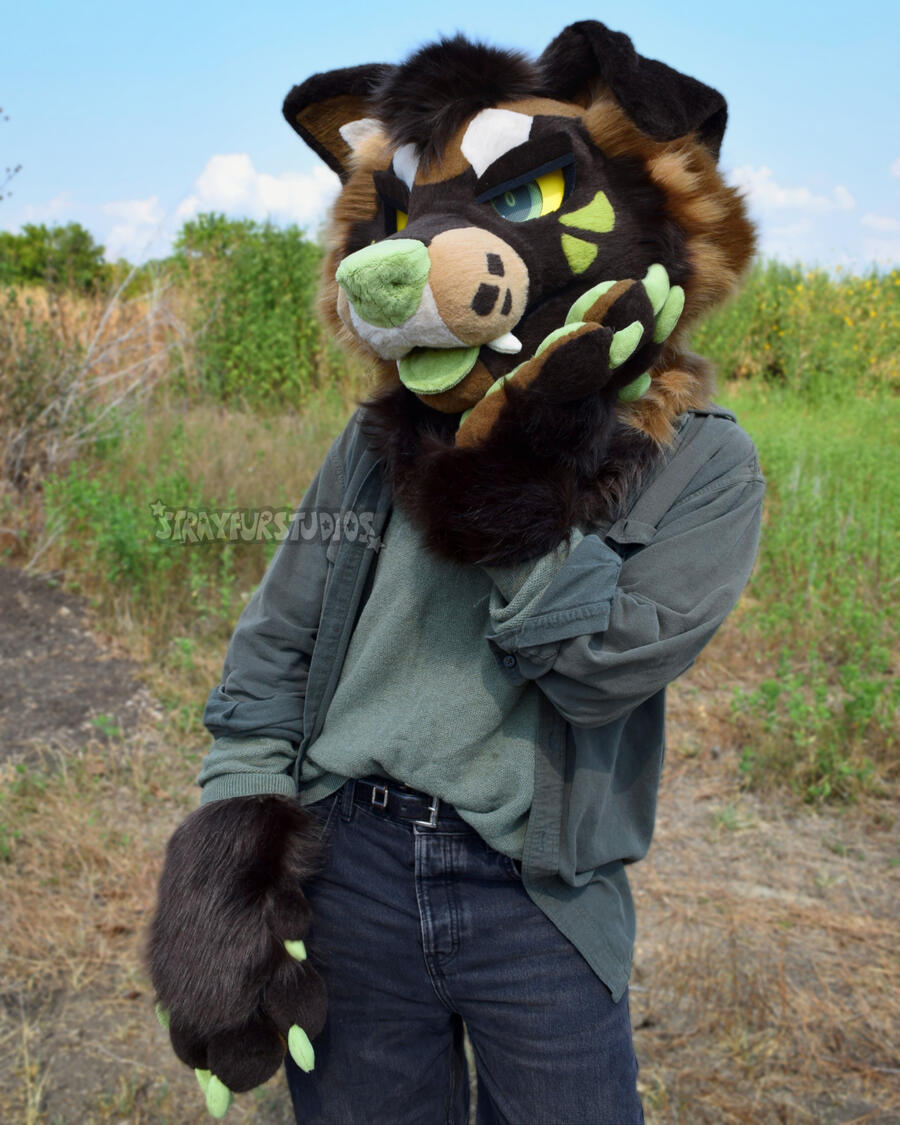 SUITS ARE NOT WASHING MACHINE TESTED. Hand wash only.General CareYou will want to fully wash your suit after every public outing! However, the less full washes you can put your suit through, the better!For a quick sanitizing and refresh, use fursuit spray on the inside and outside of your fursuit. Brush the spray into the fur. BE CAREFUL AND AVOID GETTING THE EYES WET! DO NOT USE PERFUMES NOT MADE FOR USE ON FURSUITS!! Proper suit sprays can be found on websites like Etsy, at furry convention spaces, or you can look up how to make some yourself!Brush your suit regularly to ensure it stays looking nice. However, you should avoid brushing any felt details on the face! I like to brush an area, then smooth it down with my hand or a soft bristle brush afterwards to ensure a polished look. All suits from SFS come with a slicker brush, but you can purchase them at your local pet store or online!RepairsFursuits require regular maintenance and upkeep. It is not uncommon for a seam to pop, but don't worry! Most issues are easily fixed with a sewing kit.Close any holes that appear with a blanket or ladder stitch. I recommend using a curved needle for tight spaces, and upholstery thread to ensure durability. Ensure you use a matching thread color to the area you are sewing.Stain RemovalIf you go suiting frequently, chances are you'll get a few stains on your suit! However, getting these pesky problems out is easier than you think!
